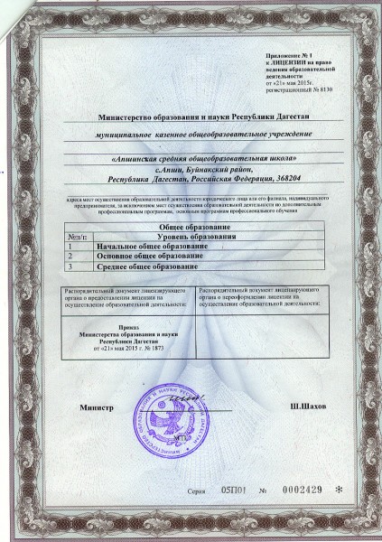 Управление образования Буйнакского района http://buynakskruo.dagschool.com 368220, Республика Дагестан, г.Буйнакск, ул.Ленина, 61 Контактный телефон учредителя: 2-34-54 2-21-01 |
